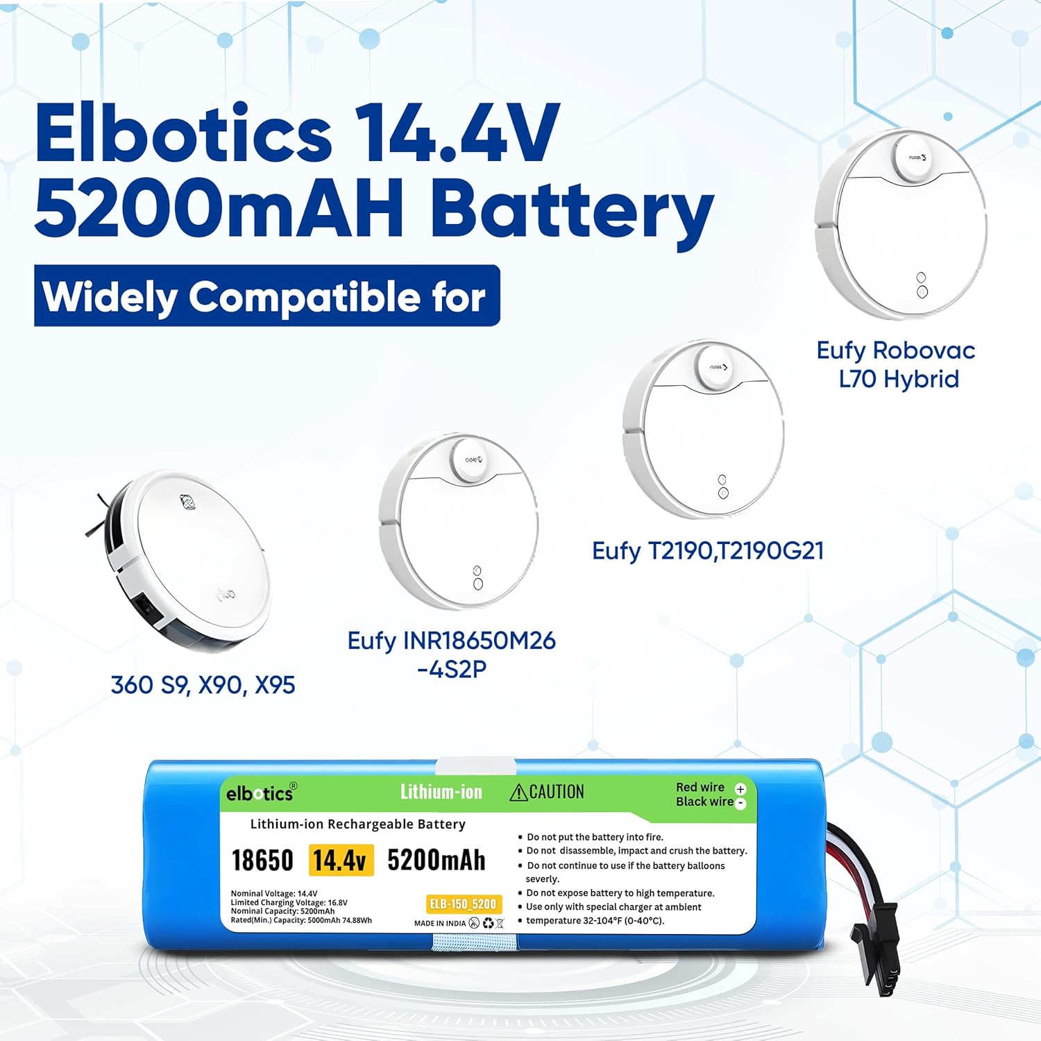 ELBOTICS 14.8v 2600 mAh Li-ion Replacement Battery is perfect for my Eufy Robovac. The performance is excellent, and the team at Elbotics provided exceptional customer support, discussing the issue with my faulty battery and helping with the replacement. Truly worth it. Thank you, Elbotics!