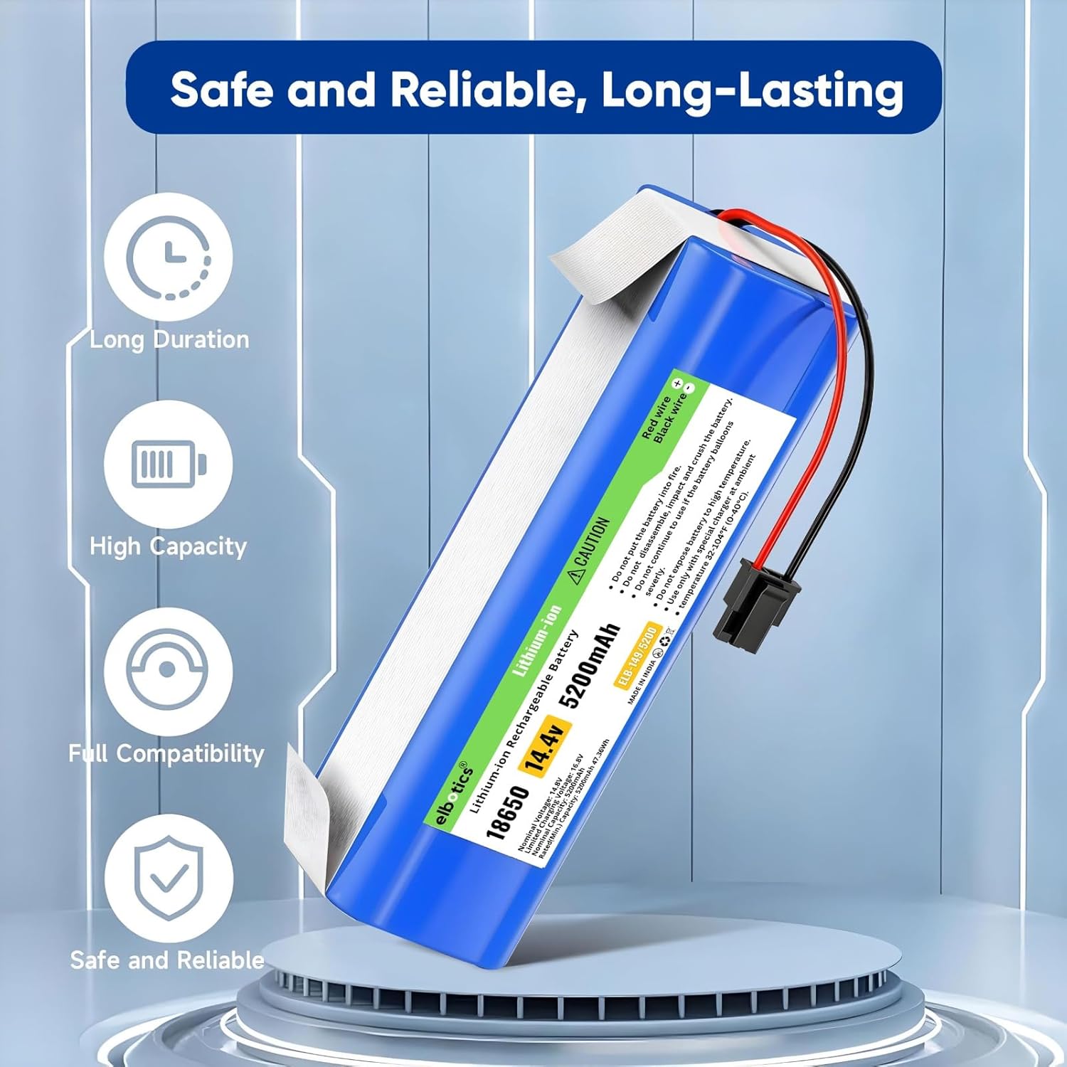 ELBOTICS 14.8v 2600 mAh Li-ion Replacement Battery is perfect for my Eufy Robovac. The performance is excellent, and the team at Elbotics provided exceptional customer support, discussing the issue with my faulty battery and helping with the replacement. Truly worth it. Thank you, Elbotics!
