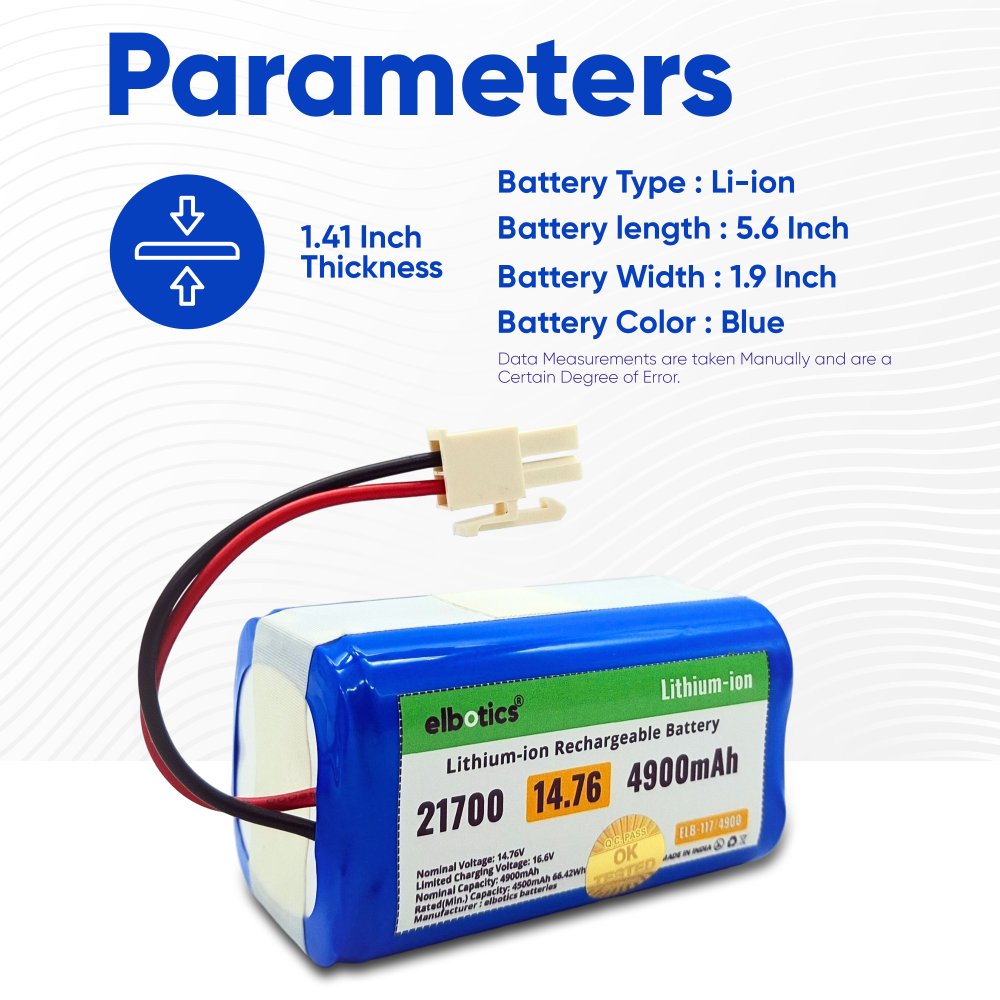 ELBOTICS 14.8v 2600 mAh Li-ion Replacement Battery is perfect for my Eufy Robovac. The performance is excellent, and the team at Elbotics provided exceptional customer support, discussing the issue with my faulty battery and helping with the replacement. Truly worth it. Thank you, Elbotics!