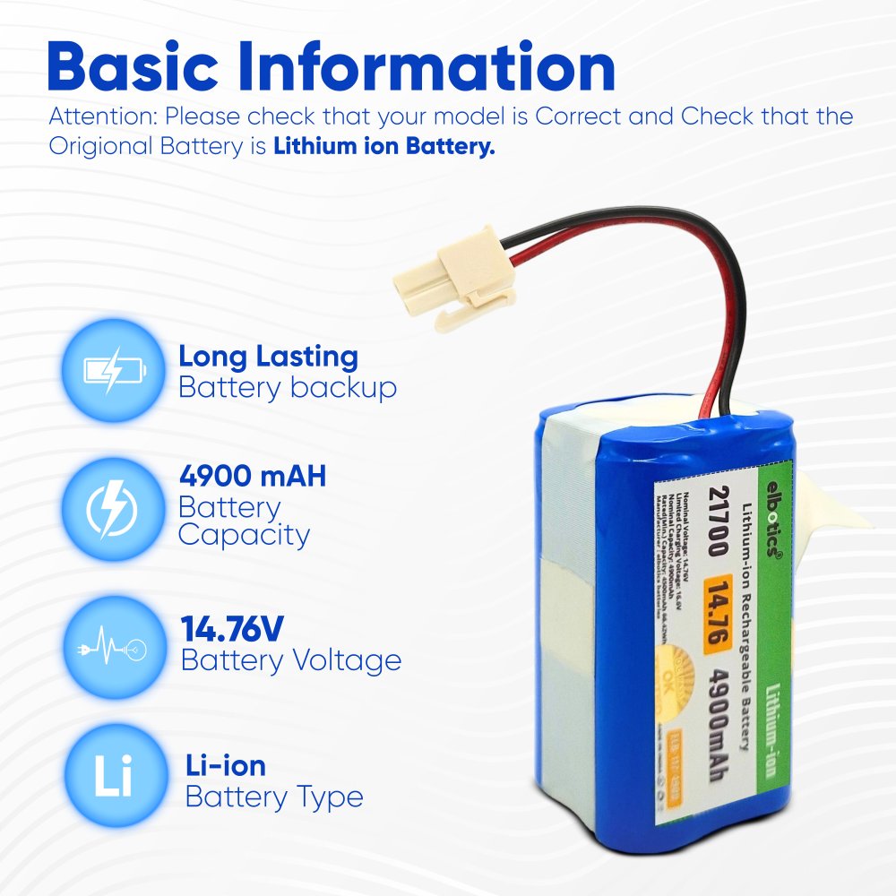 High-Capacity 14.76V Lithium-ion Battery – Premium Li-ion rechargeable battery with 4900mAh capacity for A20 Pro, T20s, and T20s Pro vacuum cleaners, delivering extended cleaning time and consistent suction power.