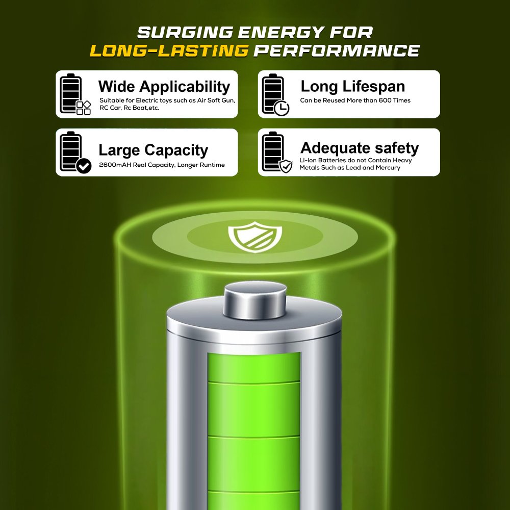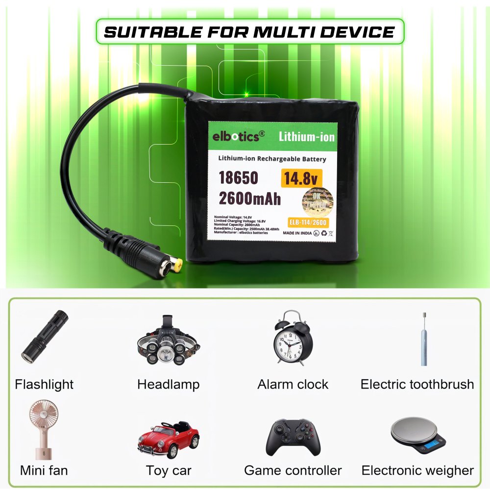 The 14.8V 2600mAh lithium-ion battery is a versatile and efficient power source commonly used across various industries and applications. This type of battery combines a nominal voltage of 14.8 volts with a capacity of 2600 milliampere-hours (mAh), offering a balance between high energy density, lightweight design, and robust performance. These characteristics make it a preferred choice for portable and rechargeable devices. Lithium-ion batteries are known for their reliability, longer lifespan, and low maintenance requirements compared to other rechargeable battery chemistries, such as nickel-cadmium (NiCd) or lead-acid. The 14.8V 2600mAh configuration is particularly suited for mid-range power consumption devices, offering sufficient energy for extended operation without frequent recharging.
