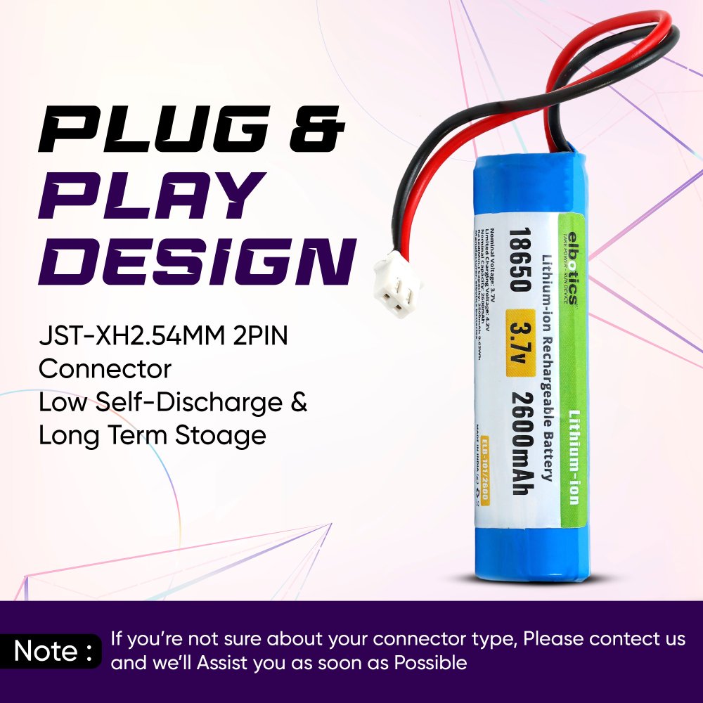 ELBOTICS Introducing the ELBOTICS 3.7 V 3200mAh Rechargeable Lithium-Ion Battery—a cuttingâ€edge power solution engineered to drive your innovative DIY electronic projects, toys, lighting systems, and Bluetooth devices. Designed with advanced lithiumâ€ion technology, this battery delivers a steady 3.7 V output and a robust 3200mAh XH2.54mAh capacity to ensure prolonged, efficient performance even under demanding conditions. Its integrated XH2.54/2P connector provides a secure and reliable interface that simplifies installation and guarantees seamless compatibility with a wide range of devices. Built to last, it incorporates advanced safety features including overcharge protection, over-discharge safeguards, and short-circuit prevention, protecting both your projects and the battery itself. Compact and lightweight, it is ideal for portable applications, while its durability and consistent performance make it a trusted choice for professional-grade projects. Whether upgrading a classic toy or designing a next-generation gadget, this battery exceeds expectations by offering dependable power management. Its reliable performance and ease-of-use empower you to push the boundaries of creative innovation. Trust ELBOTICS to deliver excellence and precision in every project, unlocking limitless potential in your electronic endeavors.