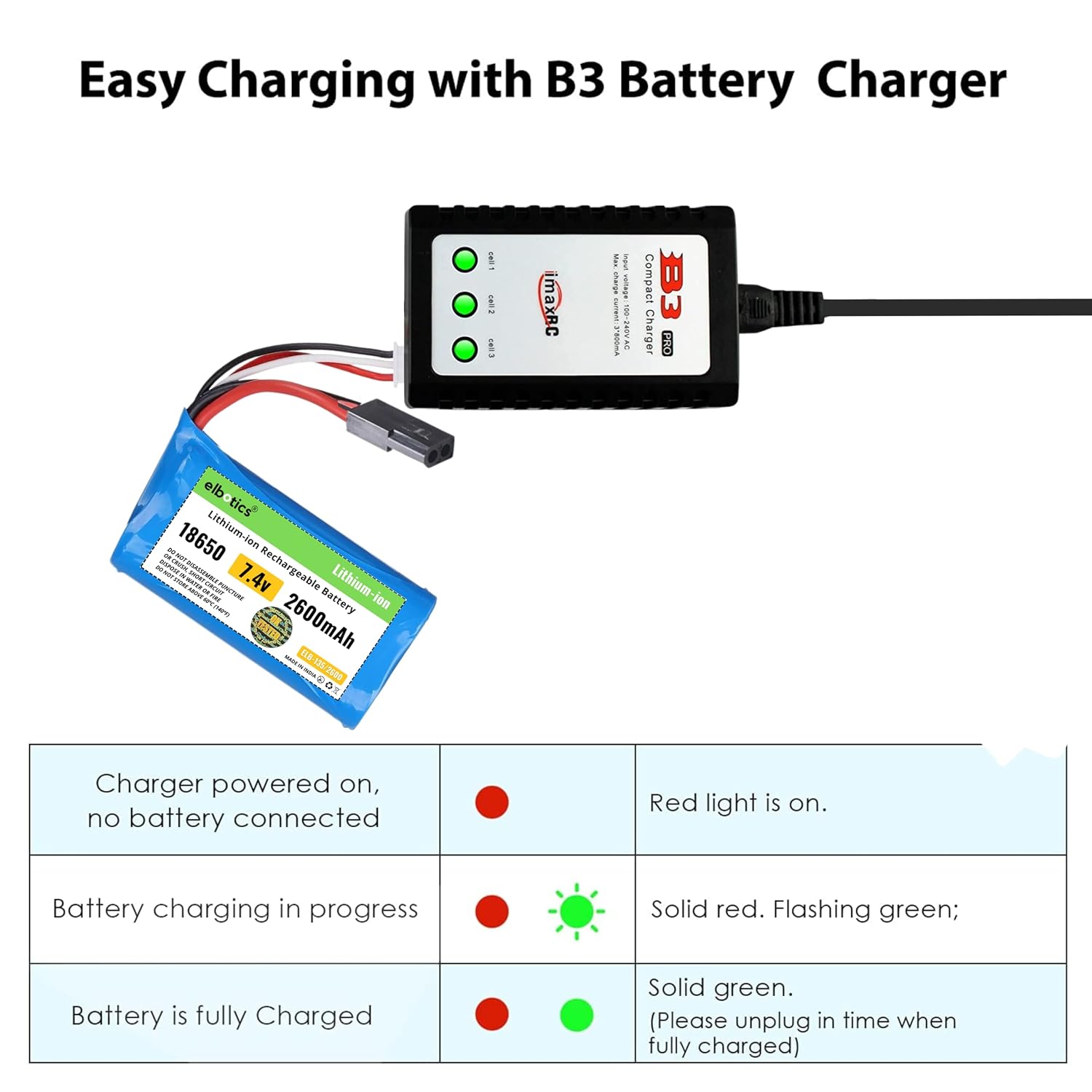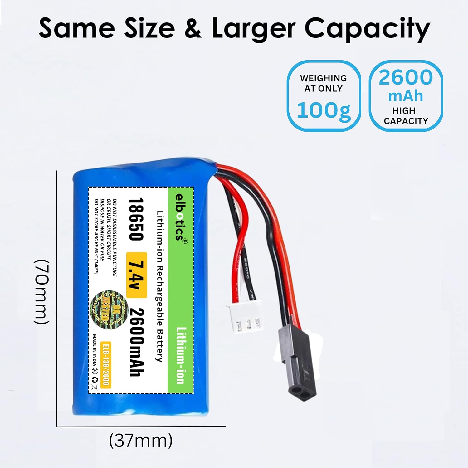 Wide Application: Elbotics 2600mAh high capacity Li-ion batteries fit for MN D90/91, MN 99/99s RC cars and Skytech Model H101 Model H103, Model H105 remote control RC boats with SM 2P Plug. Please kindly check the battery compartment size and the original battery plug of your RC boat. (Only if the voltage, dimension, and plug match, then it will fit).