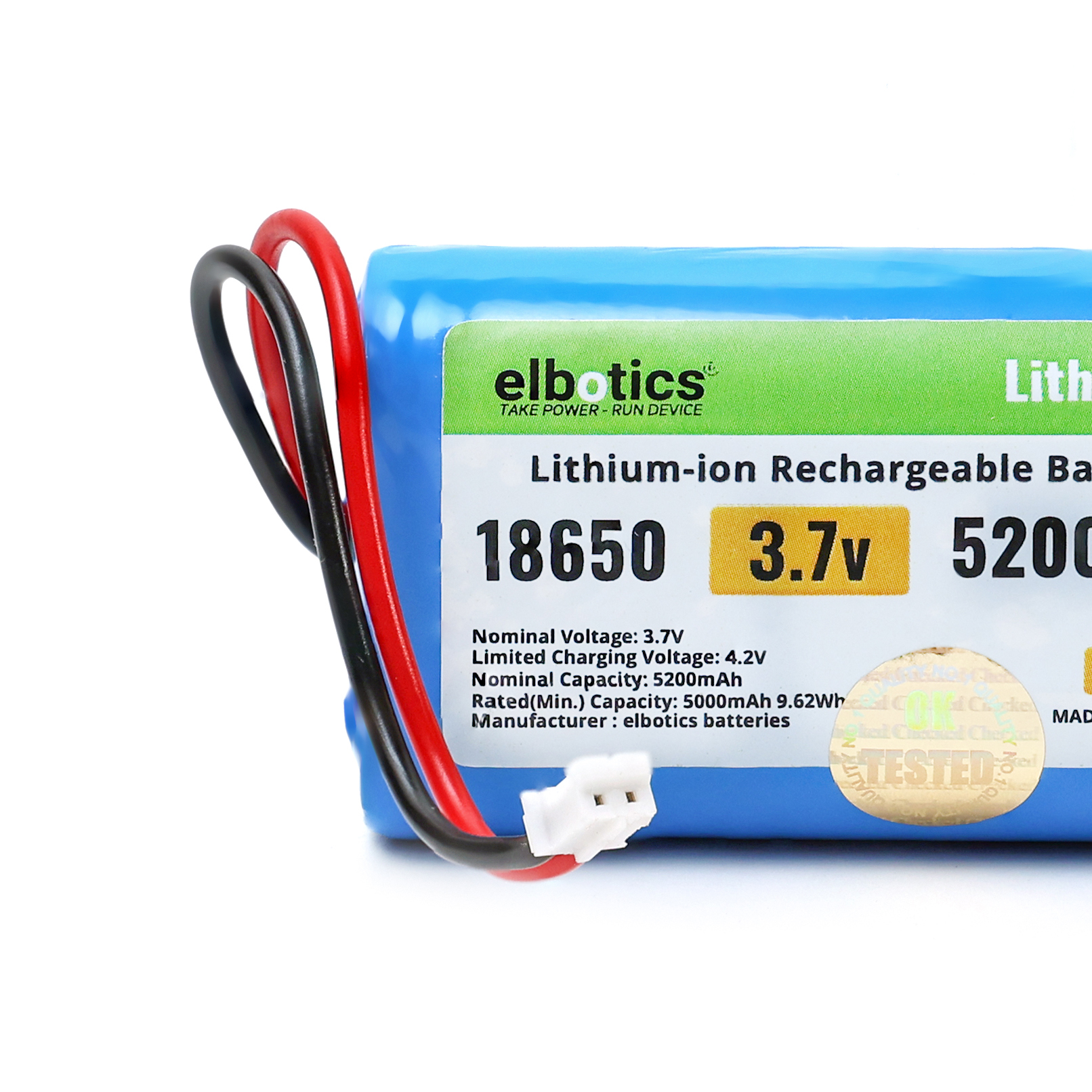 Power up your devices with this high-capacity 3.7V 5200mAh rechargeable lithium-ion battery, built in a 1S2P configuration for enhanced performance and extended runtime. It features a secure JST XH2.54 2-pin connector, providing a stable and safe connection with a wide range of electronic devices. Perfect for Bluetooth speakers, LED lighting, handheld gadgets, portable fans, and DIY electronics, this battery is compact, lightweight, and easy to install. The integrated protection circuit safeguards against overcharging, over-discharging, and short circuits, ensuring increased safety, reliability, and durability. Whether you're replacing an old battery or upgrading your power setup, this 3.7V 5200mAh pack delivers consistent, long-lasting power. Designed for both hobbyists and professionals, it supports hours of uninterrupted operation. Depending on this efficient battery to keep your devices running smoothly. A smart energy solution that’s always ready when you need it—reliable power, anytime, anywhere.